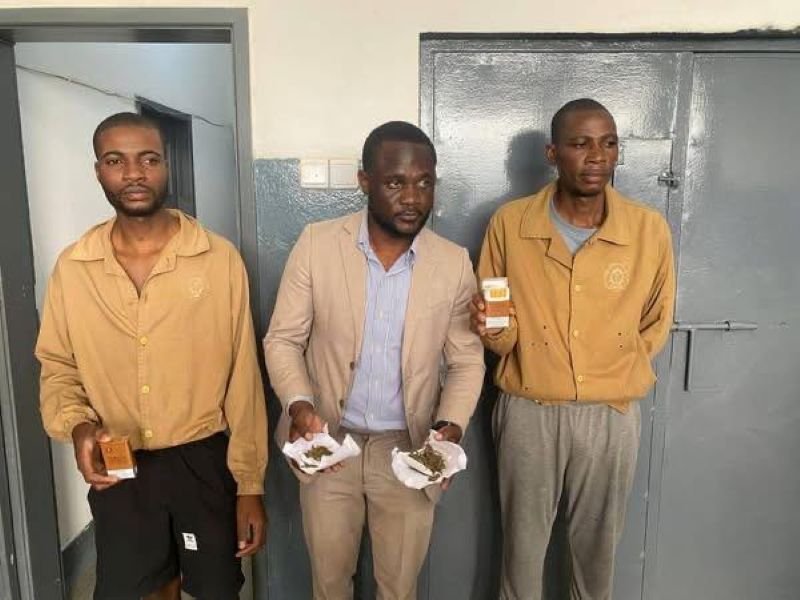 Na posse dos reclusos foram encontrados dois embrulhos contendo substâncias psicotrópicas (liamba) e dois maços de cigarros.