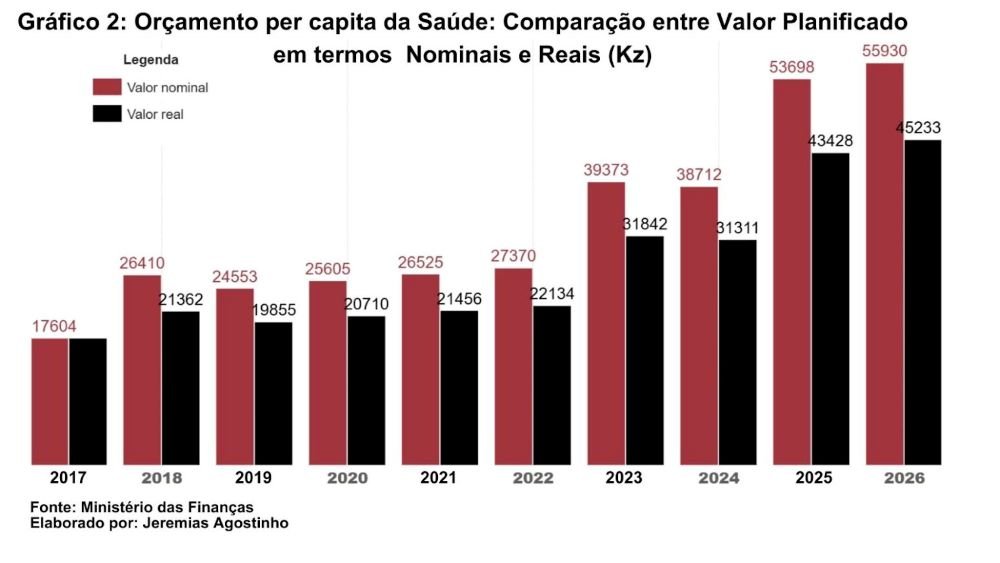 Este fenómeno demonstra que parte do “aumento” orçamental é meramente ilusório, resultado da desvalorização contínua do kwanza, e não de uma expansão efectiva da capacidade de investimento em saúde.