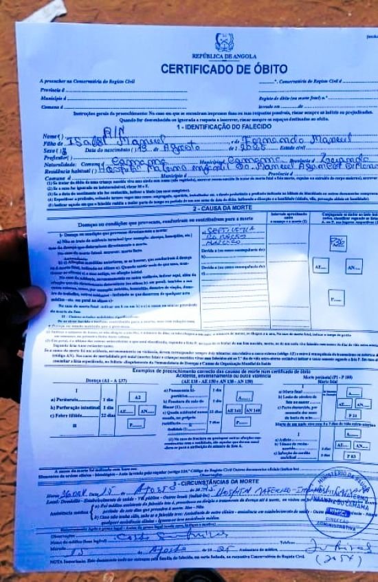 Um casal acusa o hospital materno-infantil Dr. Manuel Pedro Azancot de Menezes, em Luanda, de alegada negligência médica que terá resultado na morte da sua filha recém-nascida, Albertina Luzia Manuel, no dia 15 de agosto de 2025. De acordo com o certificado de óbito, em posse do Imparcial Press, a causa da morte foi registada como septicemia.