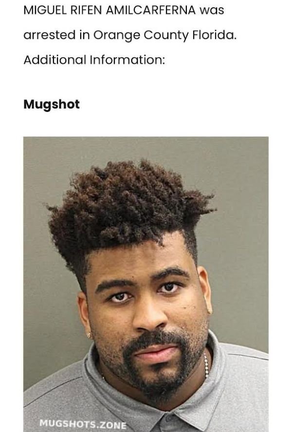 Um dos registos indica que Rifen Miguel esteve sob custódia policial no âmbito de um processo por furto de segundo grau (petit theft), uma infração classificada como contravenção, sob jurisdição do Departamento de Polícia da cidade de Ocoee.