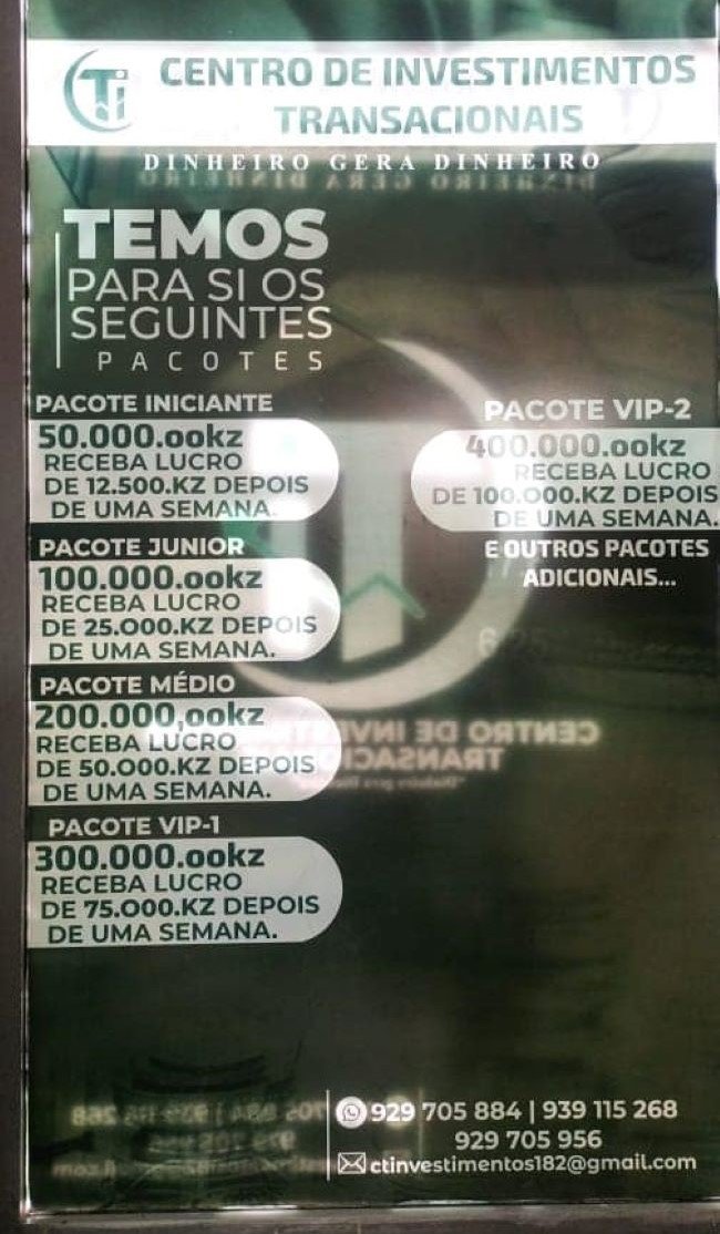 O centro de investimento está localizado no município de Moçâmedes e começou a funcionar em Maio deste ano. Durante a sua projecção, segundo o SIC local, foram feitos vários anúncios com publicidade enganosa para aliciar a população.